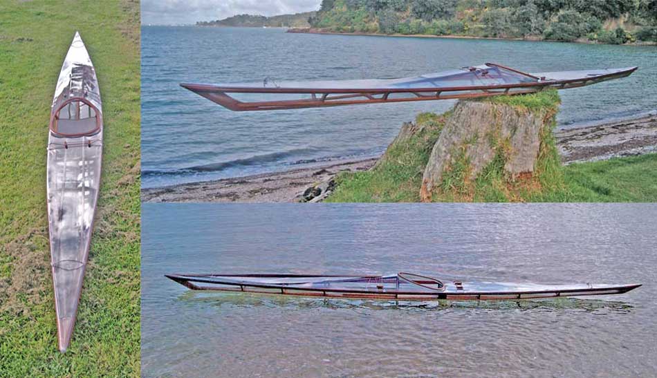 Grant, from Waiheke Island, New Zealand has completed a wood frame Sea Rover with a clear vinyl skin. He reports that the Sea Rover is one fantastic design for rolling. He has documented the project on his Island Paddler blog. Use the {Back} key to return.