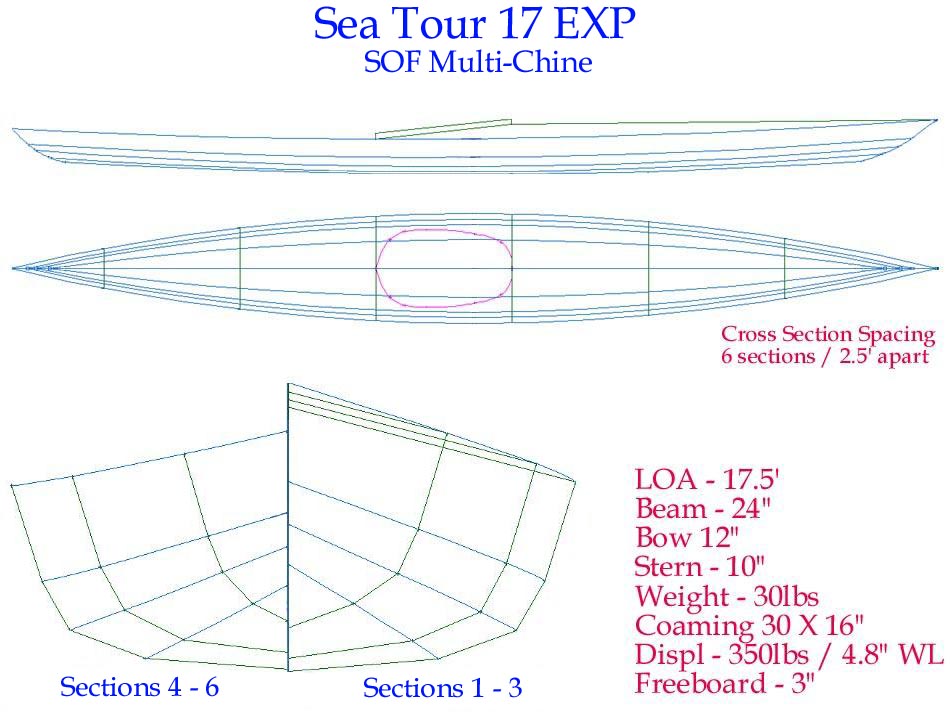 Sea Tour 17EXP Offsets at Folding Kayak Builders Manual / Designs Menu